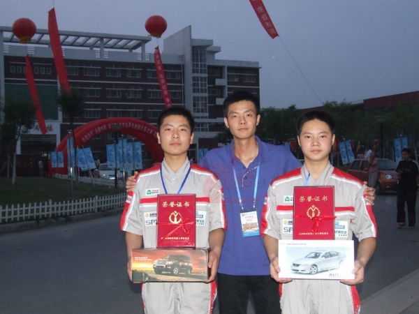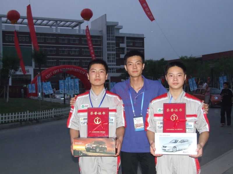 一等獎(jiǎng)得主吳文杰(右邊),三等獎(jiǎng)得主張興(左邊),龍神培訓(xùn)教師宋明(中間)