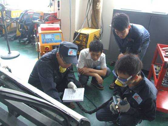 林老師使用龍神牌鈑金修復(fù)機(jī)進(jìn)行焊接作業(yè)
