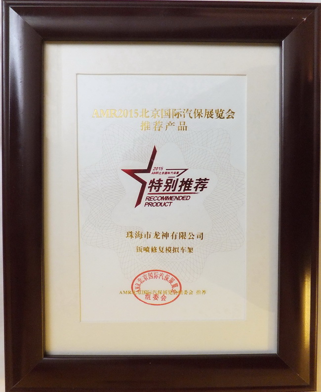 2015年4月8日,2014年度“20佳汽保產(chǎn)品”、“20佳維修工具”、AMR2015北京國際汽保展推薦產(chǎn)品頒獎晚宴于北京成功舉辦。珠海龍神“干燥過濾器”,“鈑噴修復(fù)模擬車架”榮獲ARM2015北京國際汽保展覽會推薦產(chǎn)品獎。
