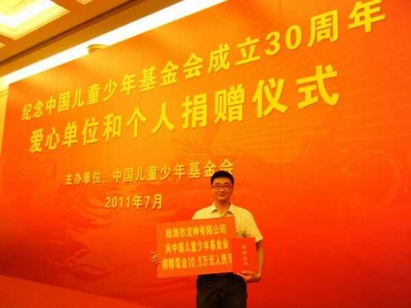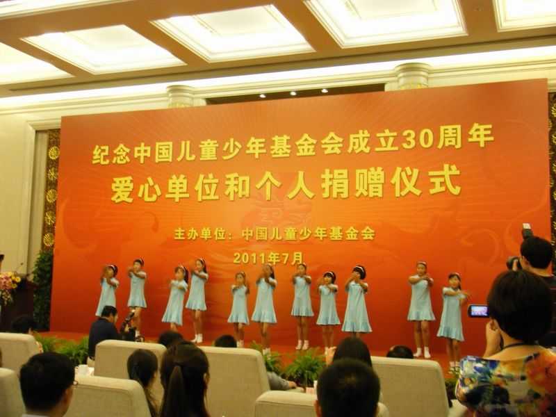 2011年7月5日,紀念中國兒童少年基金會成立30周年愛心單位和個人捐贈儀式在北京人民大會堂舉行。全國人大常委會副委員長陳至立出席捐贈儀式,為愛心單位和個人頒發(fā)捐贈證書并講話。