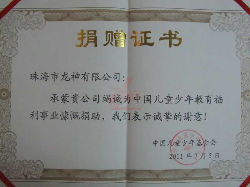 我司為支持中國兒童少年基金會的發(fā)展捐獻了自己的愛心,為著祖國的未來貢獻一份綿力。