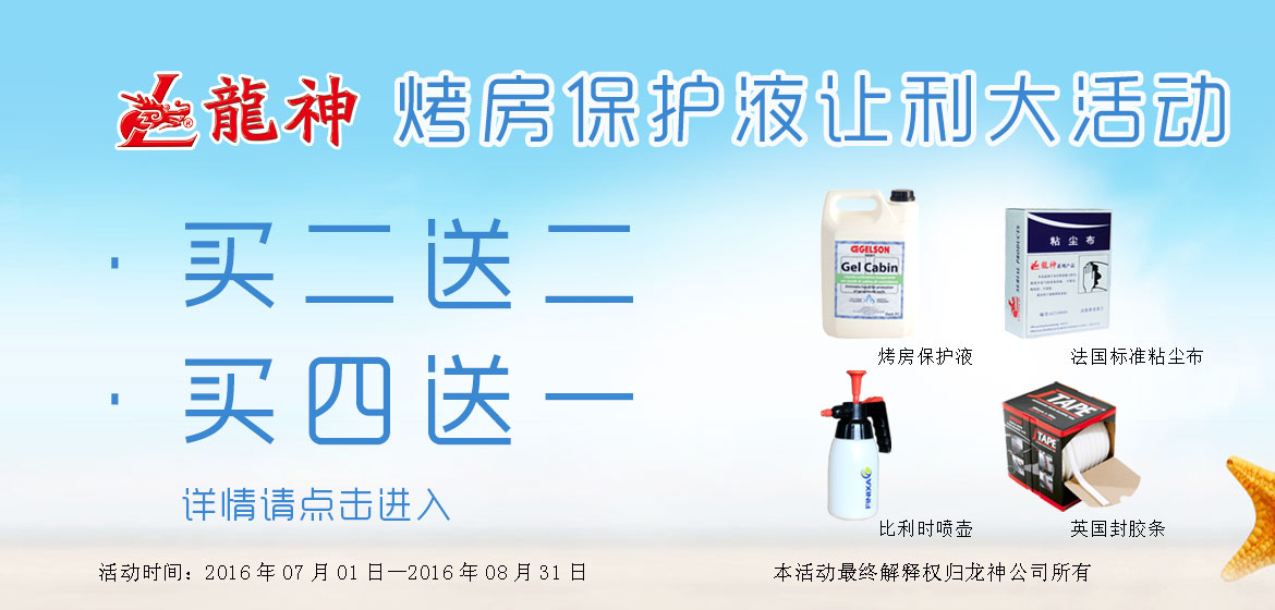 意大利烤房保護液讓利大活動 2016-06-24 10932 “熱夏、清涼、給力”意大利烤房保護液讓利大活動。買2罐,送法國“GekateX”標準粘塵布2盒;買4罐,送英國封膠條(1卷)或比利時噴壺(1個)。